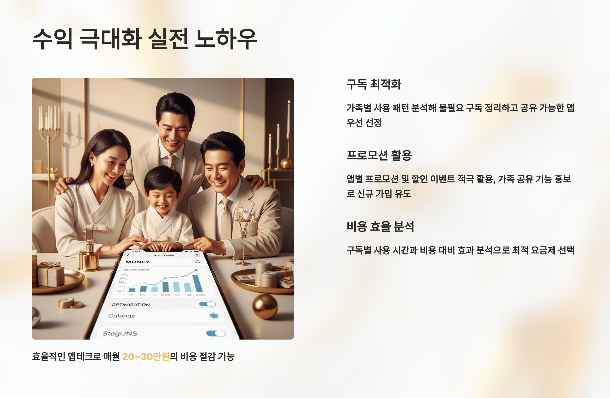 | 가족 구성원 | 추천 앱 유형 | 주요 활동 | 예상 일수익 |