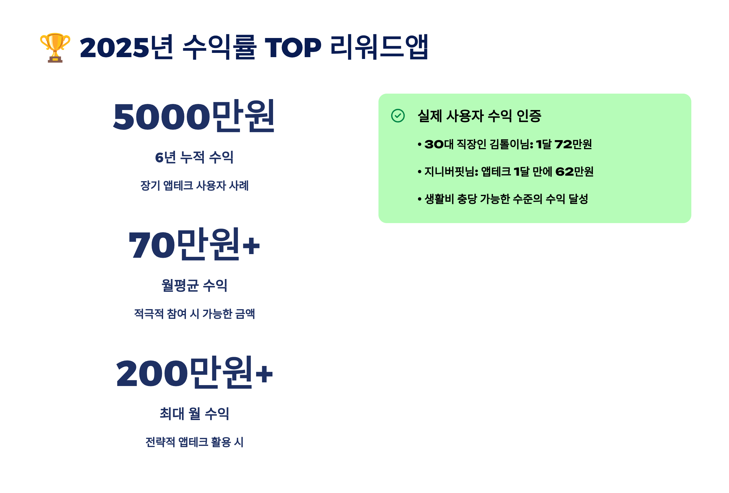 리워드앱으로 정말 돈을 벌 수 있을까요? 많은 분들이 궁금해하시는 질문이에요. 오늘은 제가 직접 한 달 동안 여러 리워드앱을 사용하면서 얻은 실제 수익을 공개하고, 2025년 현재 가장 수익률이 높은 앱들을 소개해드릴게요. 과장 없는 현실적인 정보만 담았으니 끝까지 읽어주세요!
