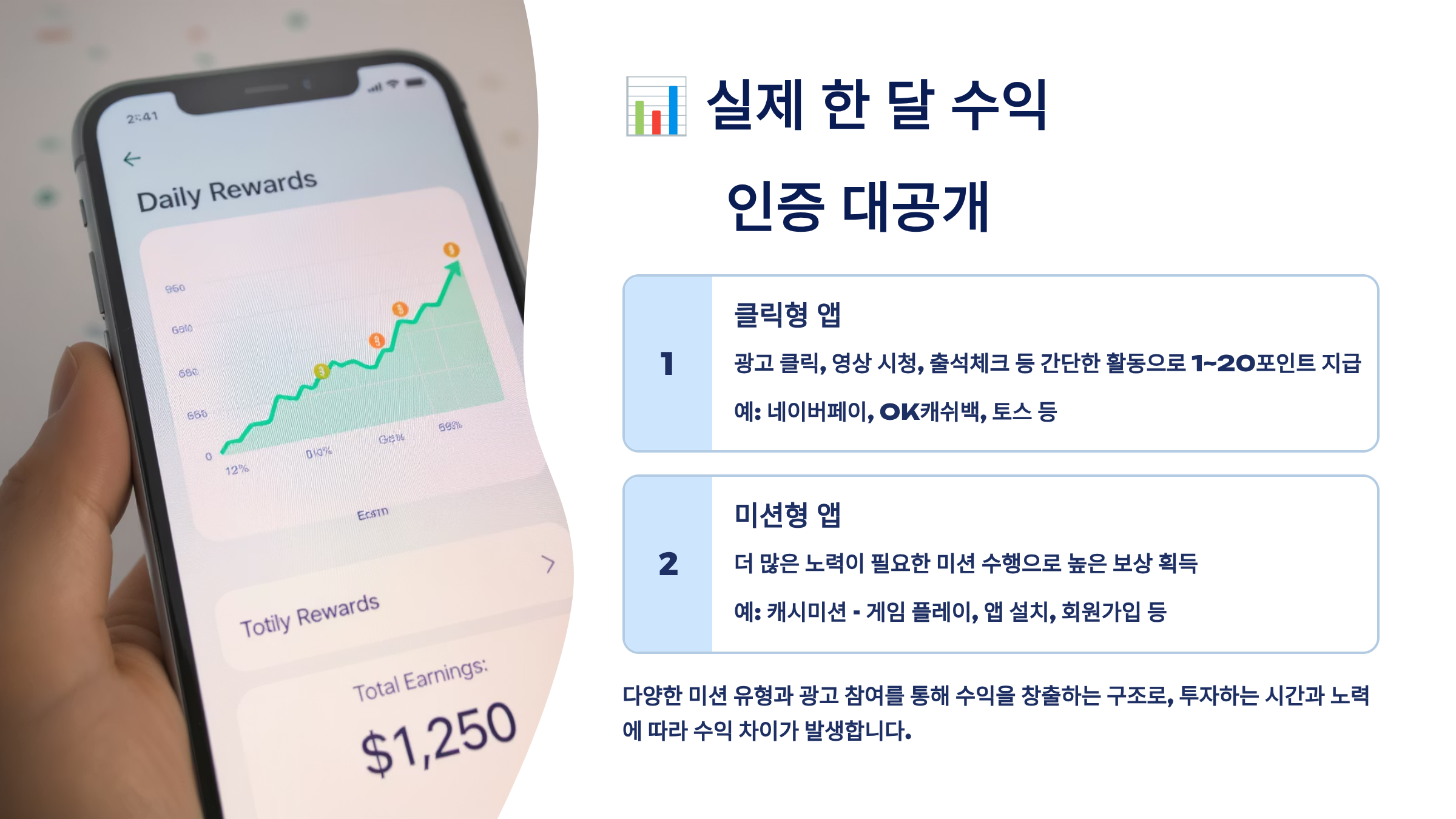 리워드앱의 수익은 꾸준함이 핵심이에요. 하루에 30분씩만 투자해도 한 달이면 제법 쏠쏠한 용돈이 모여요. 처음에는 적은 금액에 실망할 수 있지만, 습관이 되면 자연스럽게 수익이 쌓이는 것을 볼 수 있어요. 무엇보다 무리하지 않고 즐기면서 하는 것이 중요해요.