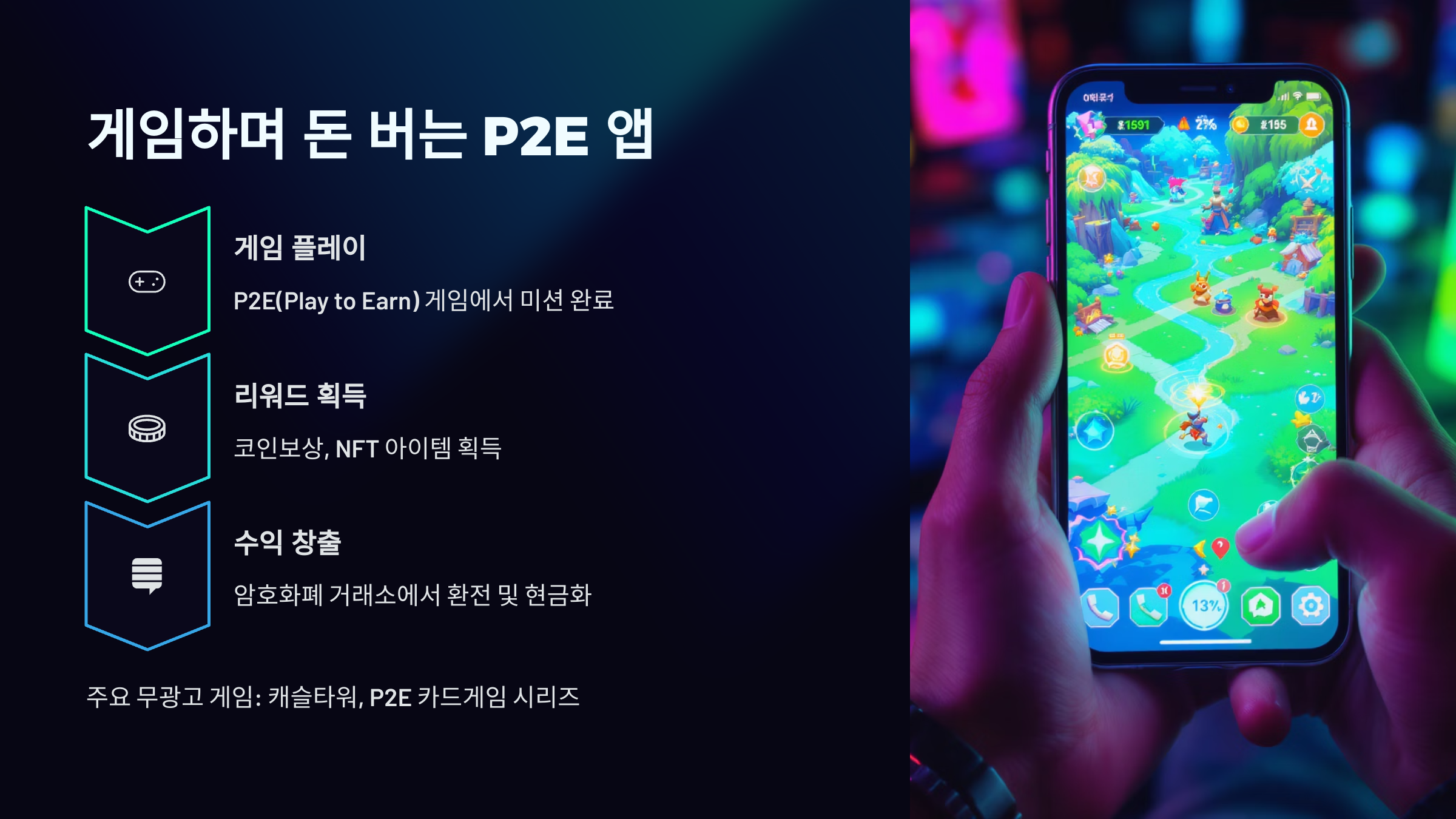 P2E(Play to Earn) 게임이 2025년 모바일 게임 시장의 새로운 패러다임으로 자리 잡았어요. 이제는 게임을 즐기면서도 실제 수익을 창출할 수 있는 시대가 왔답니다. 특히 광고 시청 없이 순수하게 게임 플레이만으로 보상을 받을 수 있는 앱들이 인기를 끌고 있어요.