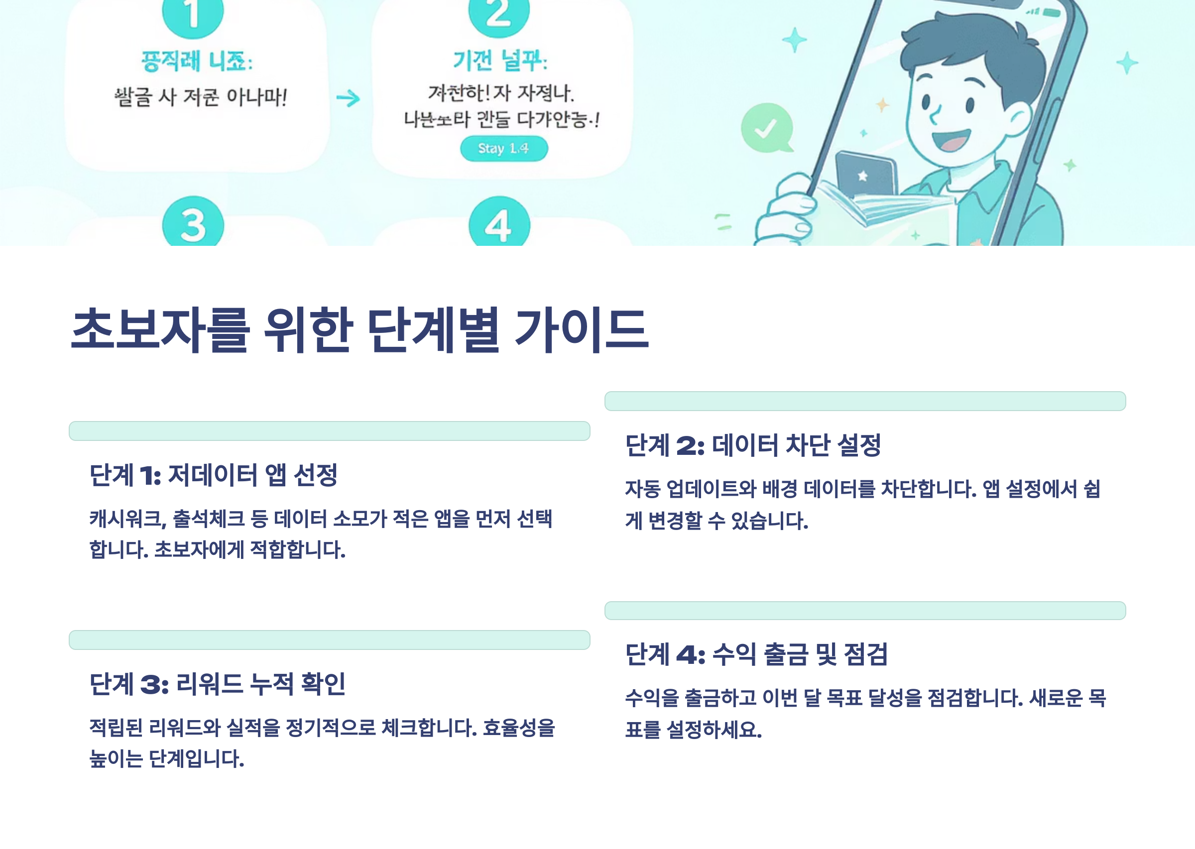 제가 처음 앱테크를 시작했을 때는 무작정 여러 앱을 설치했다가 데이터만 낭비하고 수익은 별로 없었어요. 하지만 체계적으로 접근하니 한 달에 5만원 이상의 수익을 올리면서도 데이터는 2GB도 사용하지 않게 되었답니다. 비결은 바로 '선택과 집중'이에요. 데이터 효율이 좋은 앱 위주로 선별해서 사용하는 것이 핵심이죠.