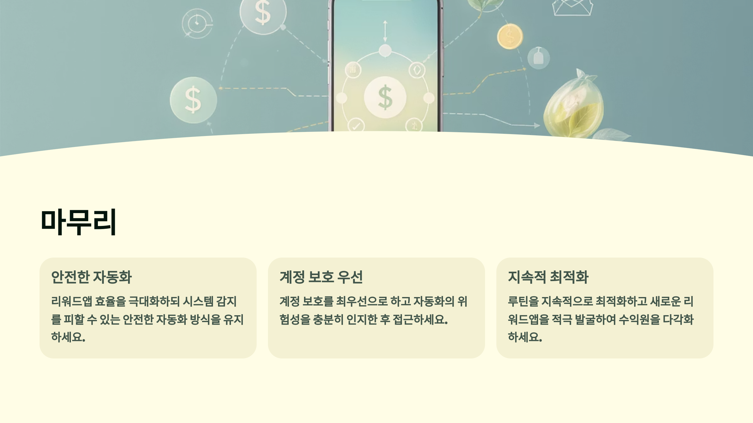 자동화 시스템을 구축하면 잠자는 시간에도 포인트가 쌓이고, 일하는 중에도 광고가 재생되면서 수익이 발생해요. 물론 처음 설정하는 과정이 조금 복잡할 수 있지만, 한 번 세팅해두면 매달 안정적인 부수입을 얻을 수 있답니다. 이제부터 리워드앱 자동화의 모든 것을 차근차근 알아보도록 할게요!