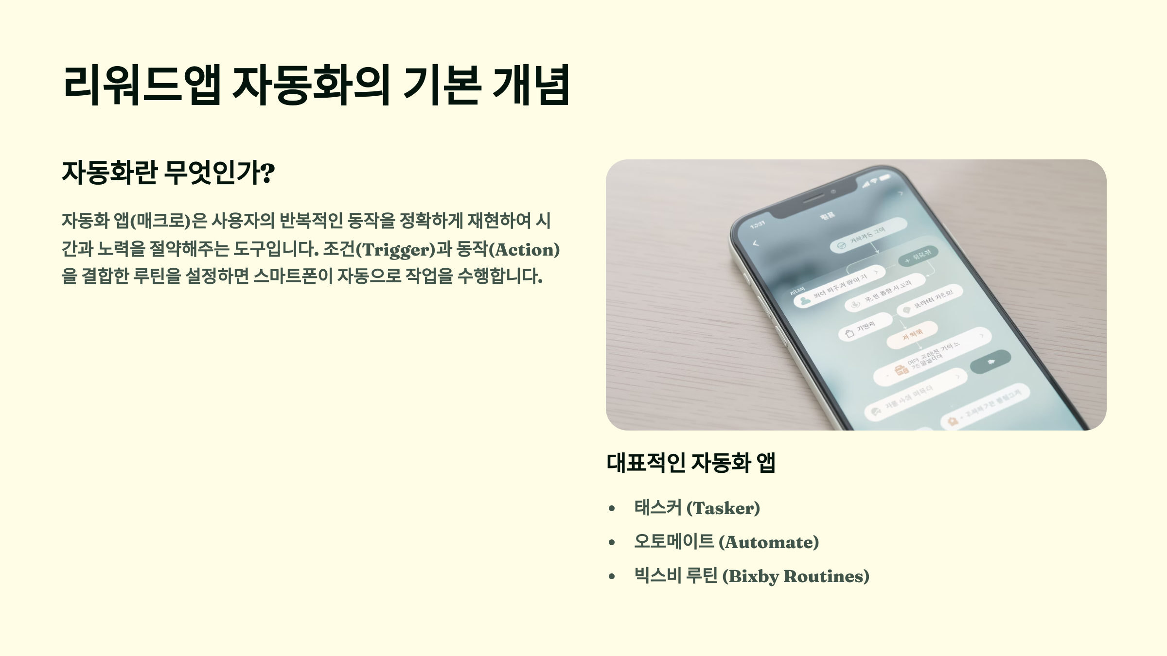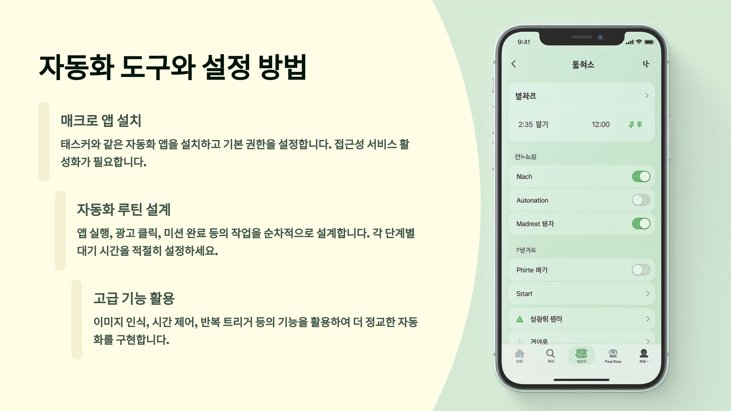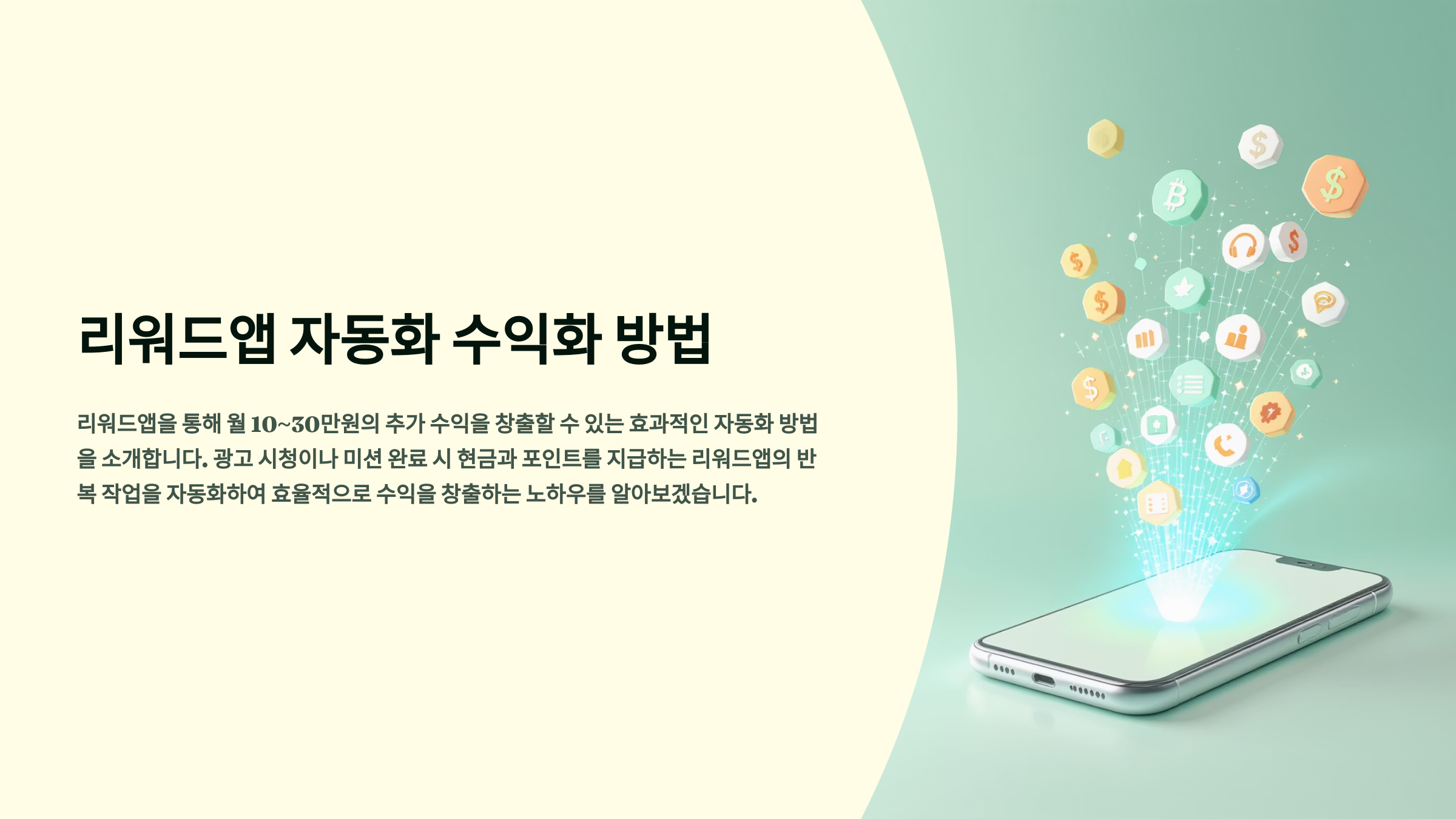 자동화 시스템을 구축하면 잠자는 시간에도 포인트가 쌓이고, 일하는 중에도 광고가 재생되면서 수익이 발생해요. 물론 처음 설정하는 과정이 조금 복잡할 수 있지만, 한 번 세팅해두면 매달 안정적인 부수입을 얻을 수 있답니다. 이제부터 리워드앱 자동화의 모든 것을 차근차근 알아보도록 할게요!