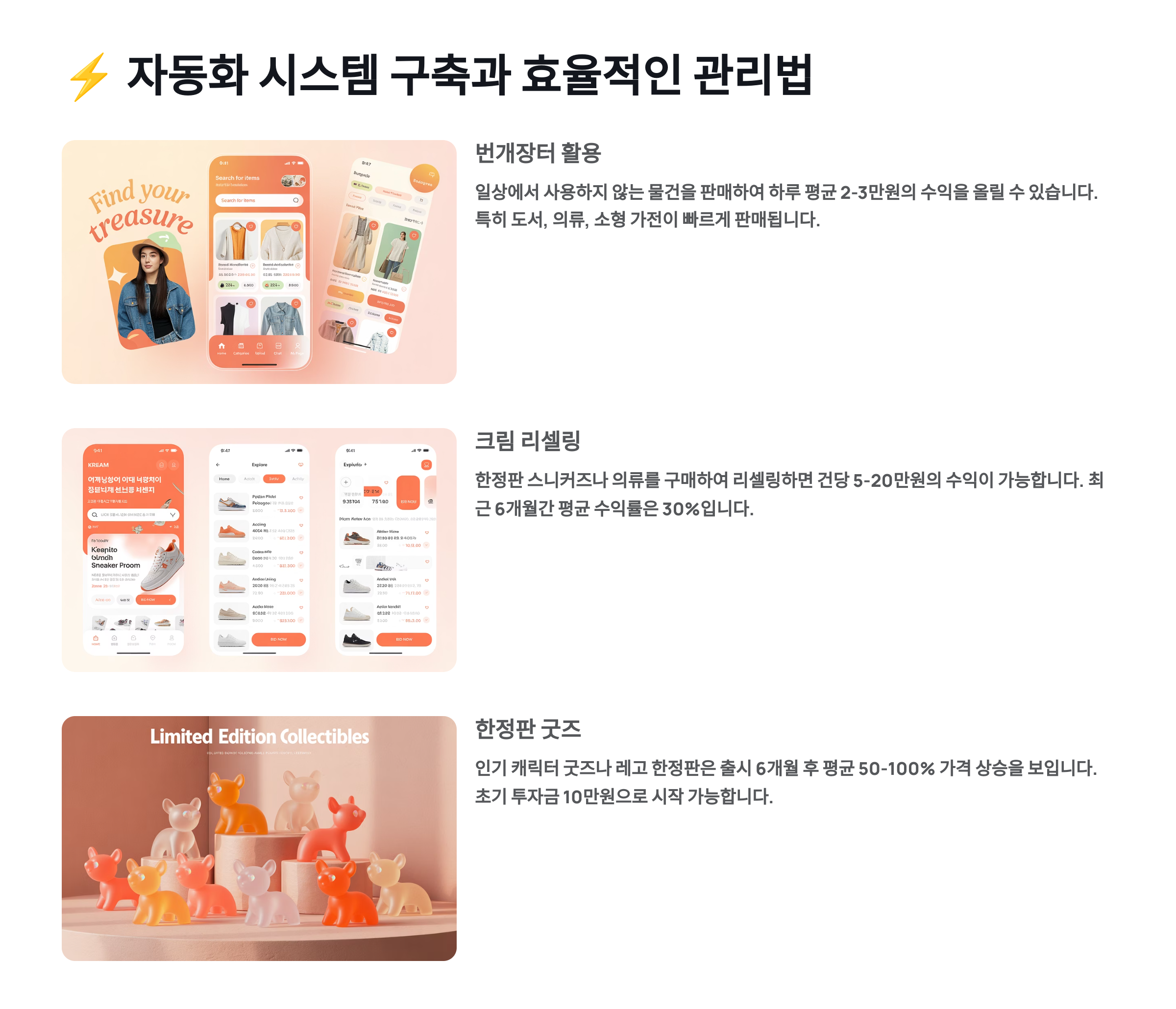 중고거래와 리셀링은 스마트폰만으로 시작할 수 있는 가장 전통적이면서도 수익성 높은 부업이에요. 당근마켓, 번개장터, 중고나라 같은 플랫폼의 발달로 누구나 쉽게 판매자가 될 수 있게 되었죠. 특히 MZ세대 사이에서는 '리셀 테크'라는 신조어가 생길 정도로 인기가 높아요. 단순히 안 쓰는 물건을 파는 것을 넘어서, 전략적으로 구매하고 판매하는 하나의 사업이 되었답니다.