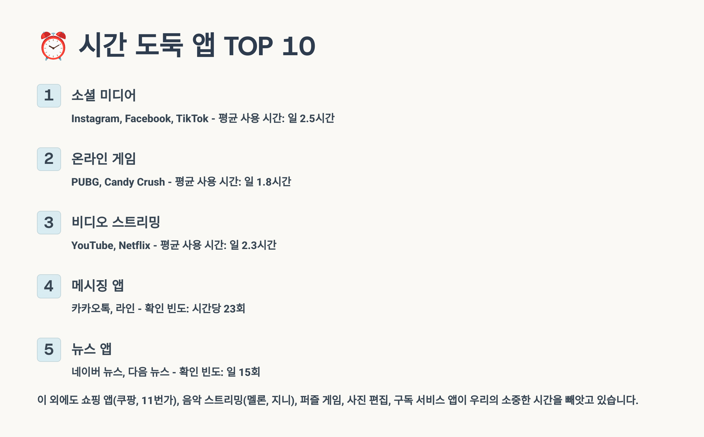 ⏱️ 시간 낭비 앱 TOP 10 상세 분석