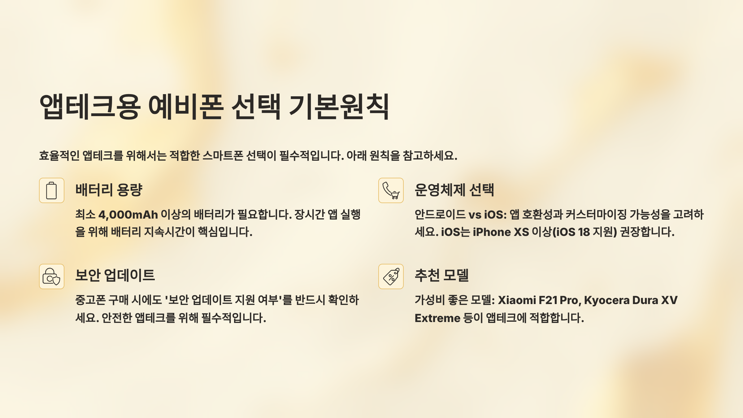 앱테크용 예비폰은 일반 스마트폰과 선택 기준이 완전히 달라요! 🎯 최신 사양이나 카메라 성능은 중요하지 않아요. 대신 안정성과 가격이 가장 중요한 요소죠. 앱테크는 주로 출석체크, 광고 시청, 걷기 측정 같은 단순 작업이라 기본 성능만 있어도 충분해요.