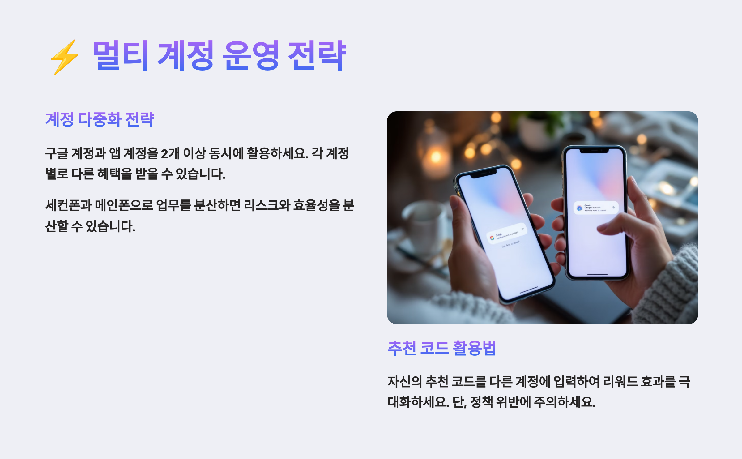 멀티 계정 운영할 때는 각 계정의 정보가 완전히 분리되어야 한다는 점을 항상 염두에 두세요. 실수로 정보가 겹치면 큰 손실이 될 수 있어요. 📝