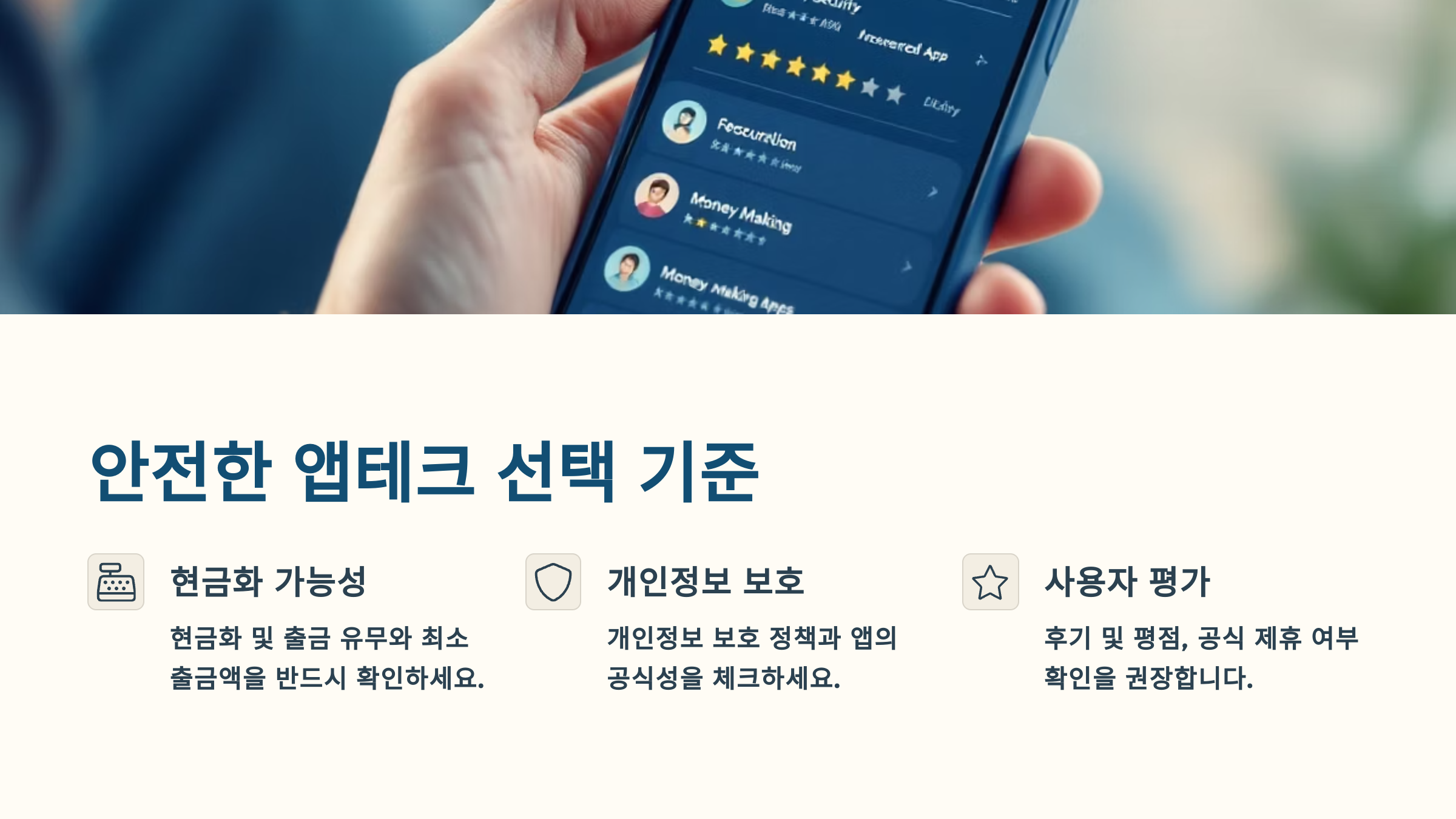 세 번째 기준은 출금 정책과 고객 서비스 품질이에요. 최소 출금 금액이 너무 높거나, 출금 수수료가 과도하거나, 출금 처리가 지나치게 오래 걸리는 앱들은 피하는 것이 좋아요. 또한 고객센터가 제대로 운영되고 있는지, 문의사항에 대한 응답이 신속하고 정확한지도 중요한 판단 기준이에요. 사용자 커뮤니티나 온라인 카페에서 실제 사용자들의 후기를 찾아보는 것도 도움이 됩니다.