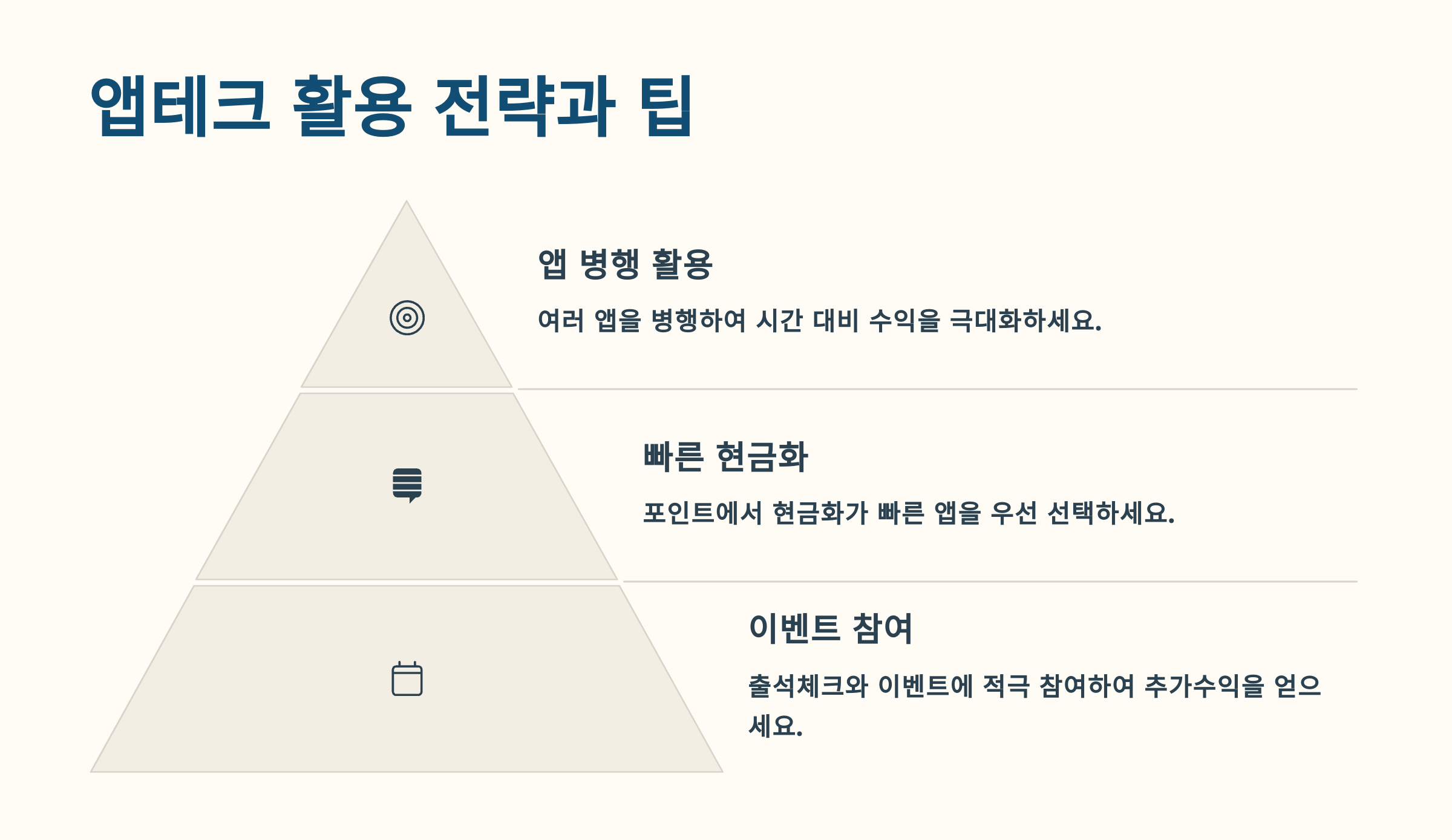 성공적인 앱테크를 위해서는 체계적인 전략과 효율적인 시간 관리가 필수예요. 먼저 본인의 라이프스타일에 맞는 앱테크 유형을 선택하는 것이 중요해요. 출퇴근 시간이 긴 직장인이라면 광고형과 설문형을 병행하는 것이 좋고, 재택근무나 자영업자라면 미션형에도 도전해볼 수 있어요. 학생이라면 방학 기간을 활용해서 집중적으로 미션형을 공략하는 전략도 효과적이랍니다. 각자의 상황에 맞는 맞춤형 전략을 세우는 것이 성공의 첫걸음이에요.