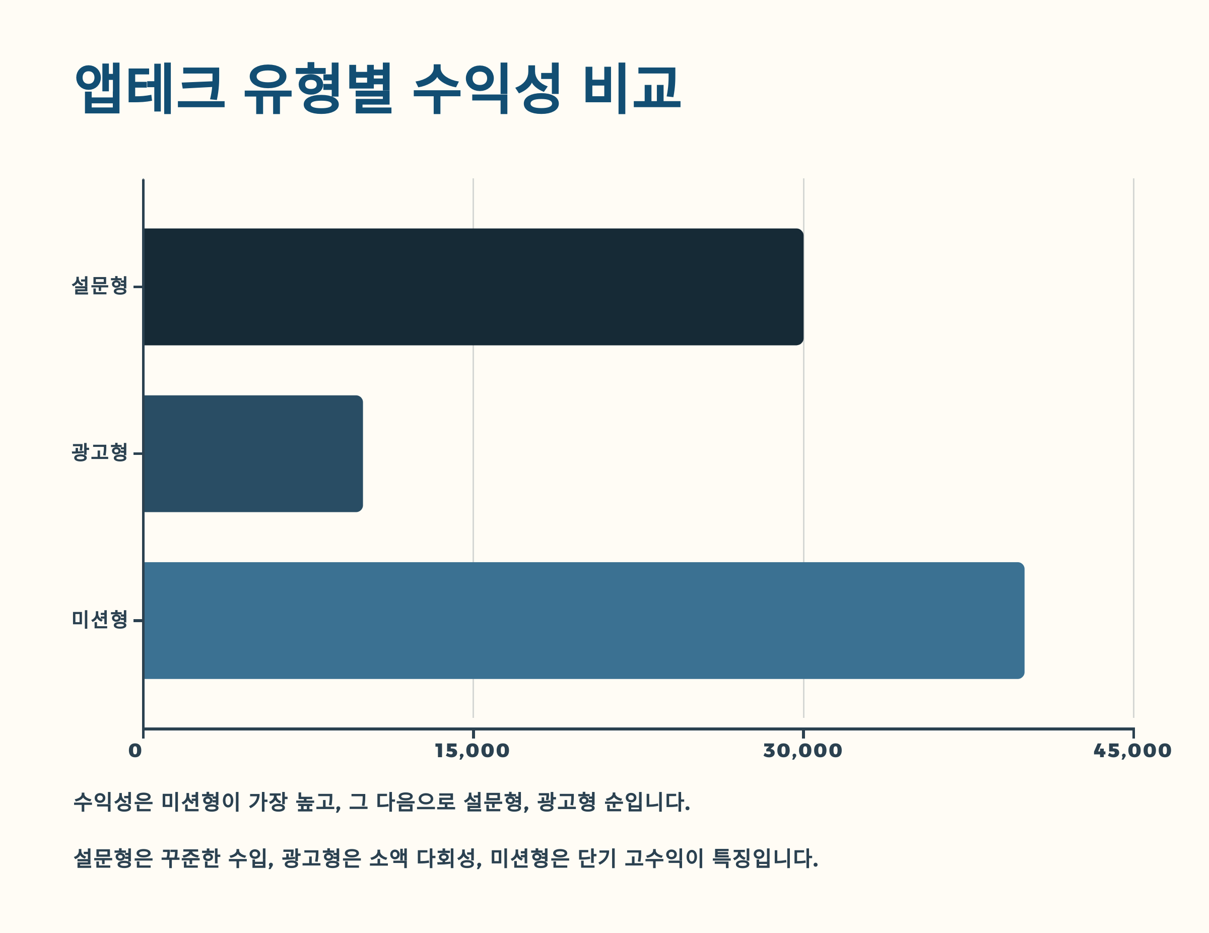 | 미션형 | 앱 설치/체험 | 건당 100~10,000원 | 10분~1시간 |