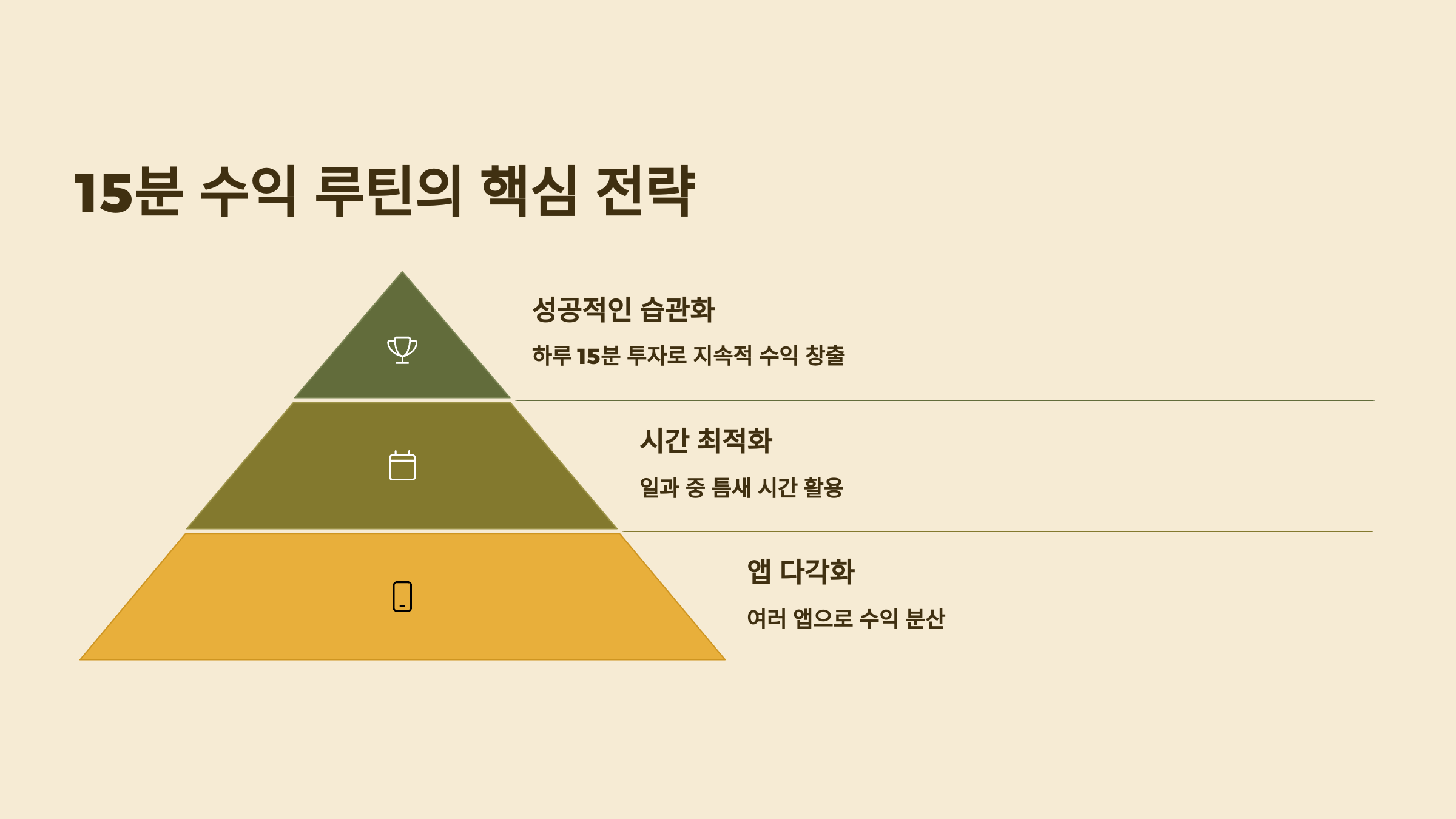 하루 15분으로 최대 수익을 내는 핵심은 시간 효율성과 집중도에 있어요. 성공적인 앱테크 사용자들의 공통점을 분석해보면, 랜덤하게 앱을 사용하는 것이 아니라 명확한 루틴과 목표를 가지고 체계적으로 접근한다는 것이에요. 15분이라는 짧은 시간 안에 최소 3-4개의 다른 플랫폼을 효율적으로 활용하면서 각각의 특성에 맞는 최적의 활동을 수행하는 것이 중요해요.