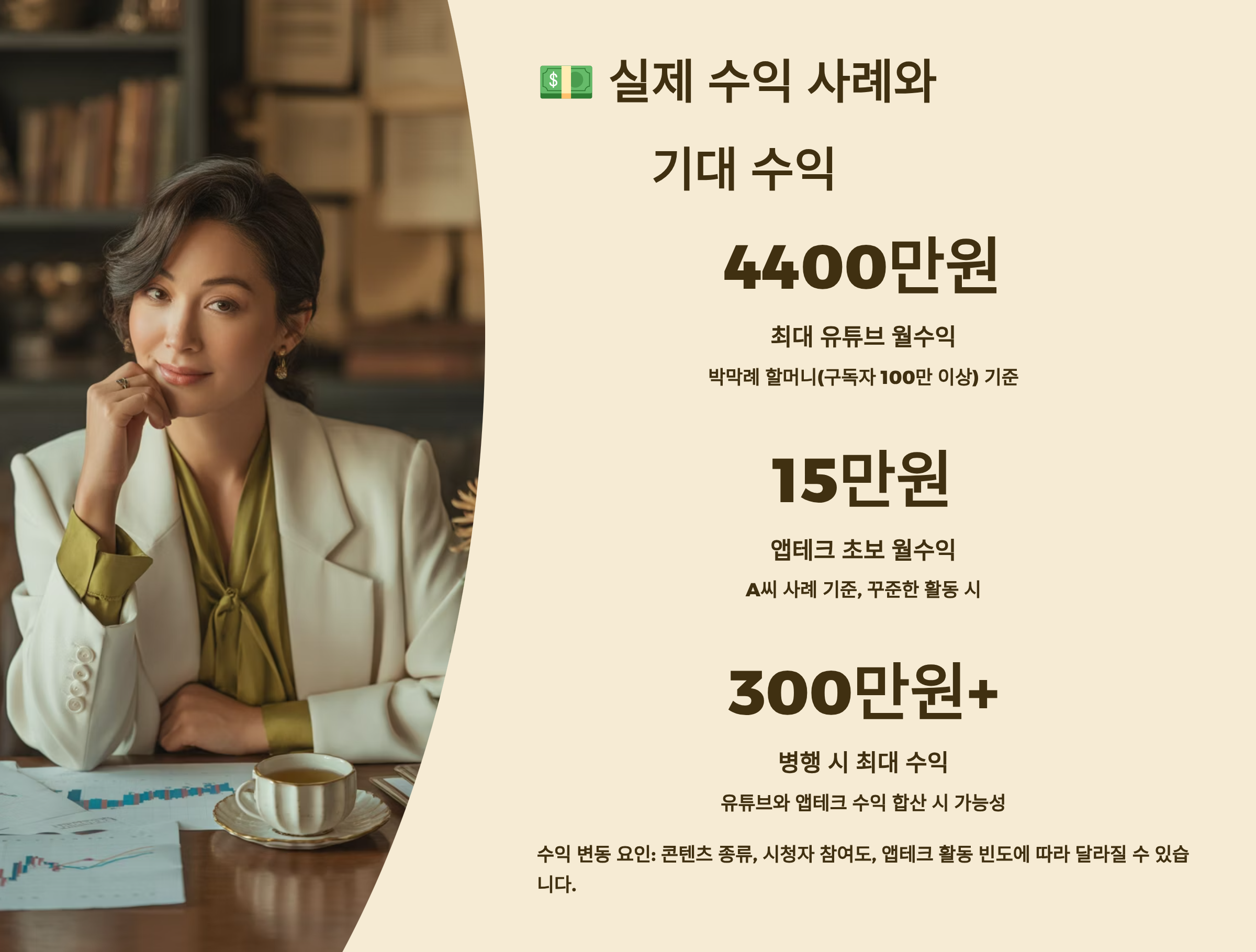 많은 분들이 궁금해하시는 것이 바로 실제로 얼마나 벌 수 있는지에 대한 부분이에요. 저를 포함해 주변에서 유튜브와 앱테크를 병행하는 사람들의 실제 수익 사례를 공유해드릴게요. 이 데이터는 2024년 하반기부터 2025년 초까지의 실제 경험을 바탕으로 한 것이랍니다. 수익은 개인의 노력과 전략에 따라 달라질 수 있어요.