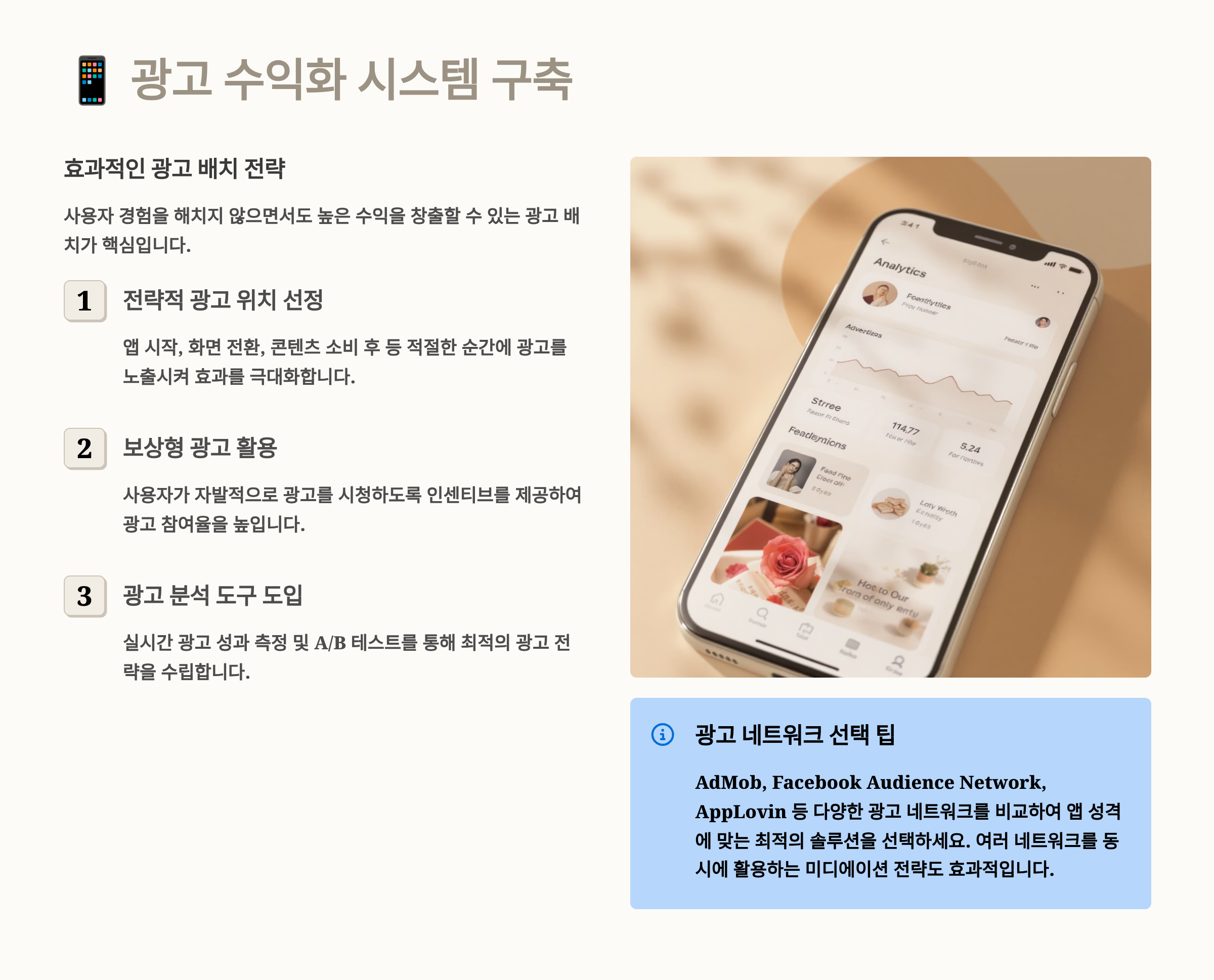 | 광고 수익 | 70-90% | $0.5-2 | ⭐⭐⭐ |