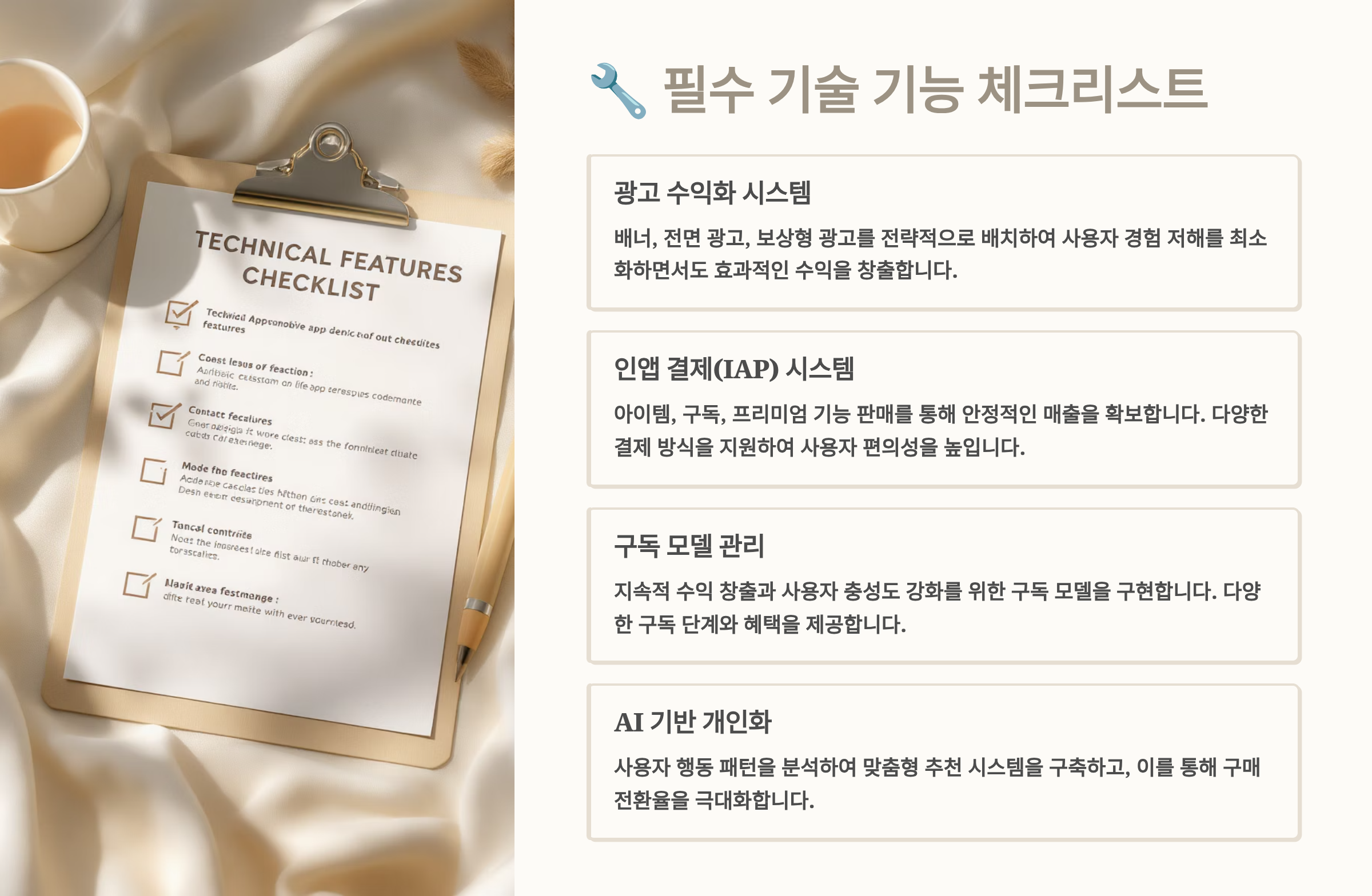 본 가이드에 제공된 정보는 일반적인 참고용이며, 개별 상황에 따라 결과가 다를 수 있습니다. 수익형 앱 개발 및 운영에는 리스크가 존재하며, 투자 결정은 충분한 검토 후 본인의 책임 하에 진행하시기 바랍니다. 법률, 세무, 투자 관련 사항은 반드시 전문가와 상담하시기 바랍니다.