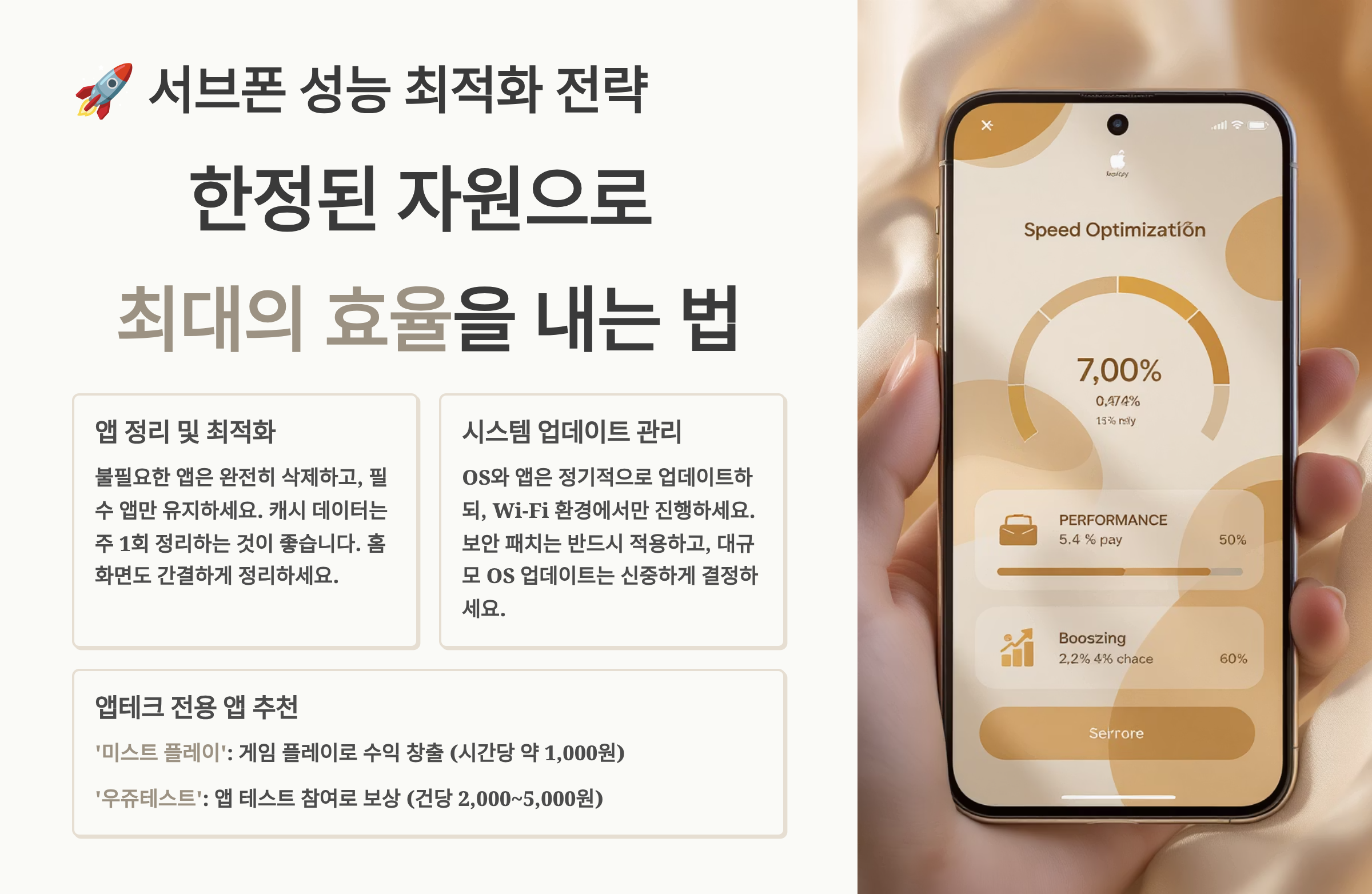앱테크로 부수입을 만들고 싶은데 어떻게 시작해야 할지 막막하신가요? 😊 저도 처음엔 그랬어요. 하지만 서브폰을 제대로 설정하고 나니 월 30만원 이상의 안정적인 부수입을 만들 수 있었답니다! 오늘은 제가 직접 경험하며 터득한 앱테크 서브폰 최적 설정법을 모두 공개할게요!