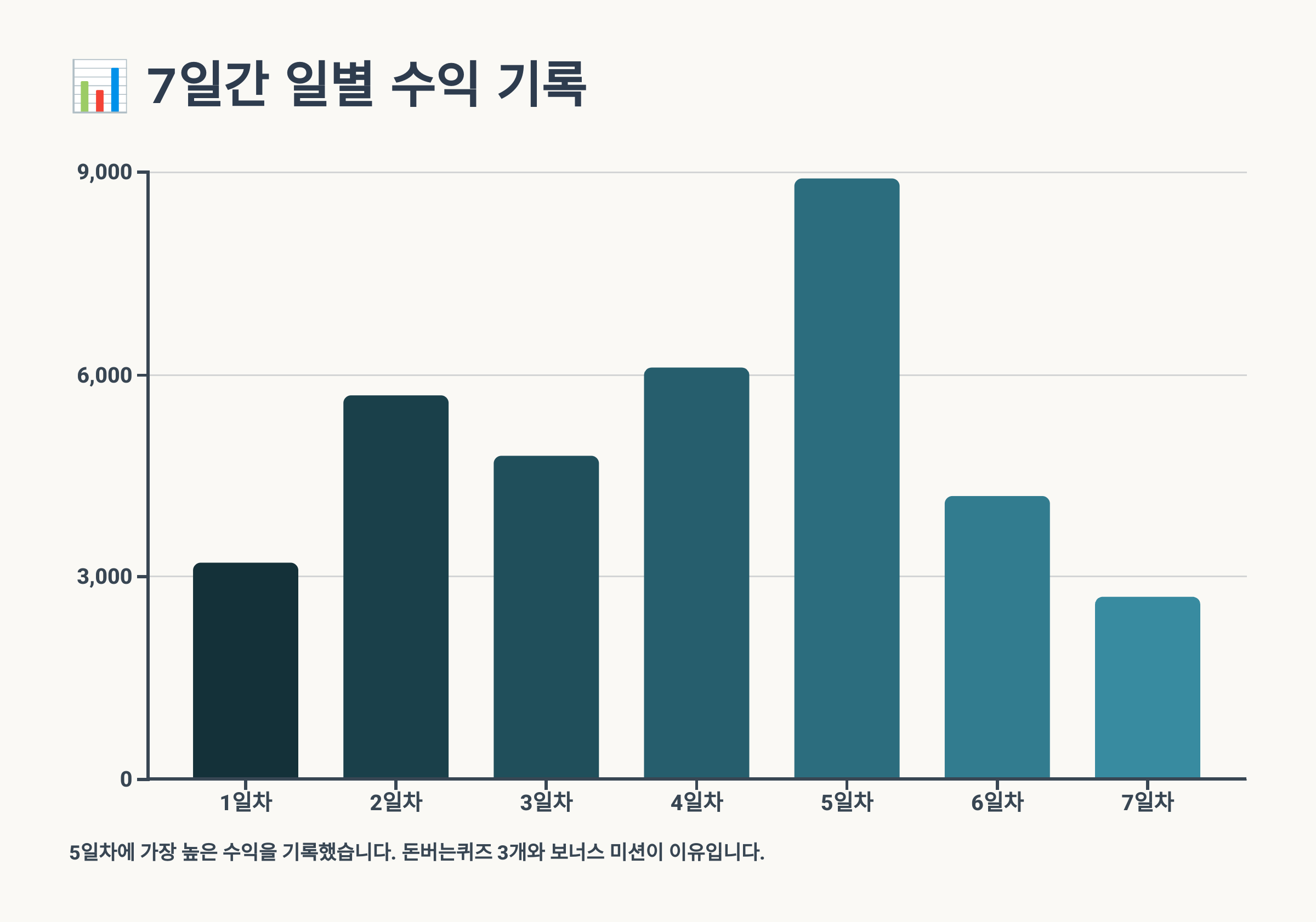 실험 기간은 2025년 5월 28일부터 6월 3일까지 정확히 7일간 진행했어요. 평일과 주말을 모두 포함해서 다양한 생활 패턴에서의 수익을 측정했답니다. 실험 참가자는 30대 직장인으로, 평소 대중교통을 이용해 출퇴근하고 점심시간에 가벼운 산책을 하는 일반적인 생활 패턴을 가지고 있어요. 특별한 운동이나 과도한 활동 없이 자연스러운 일상 속에서 얼마나 수익을 낼 수 있는지 확인하는 것이 목표였답니다.