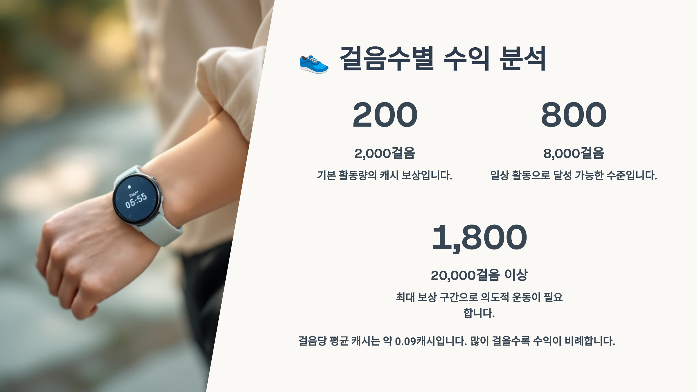 이번 실험에서는 평범한 직장인의 일상 걸음수부터 의도적으로 많이 걸었을 때까지 다양한 상황에서의 수익을 측정했어요. 또한 캐시워크의 보너스 미션, 광고 시청, 출석 체크 등 모든 수익 요소를 활용해서 최대한 많은 포인트를 모아보는 전략도 실행했답니다. 리얼한 데이터와 함께 실질적인 수익 극대화 방법을 알려드릴게요!