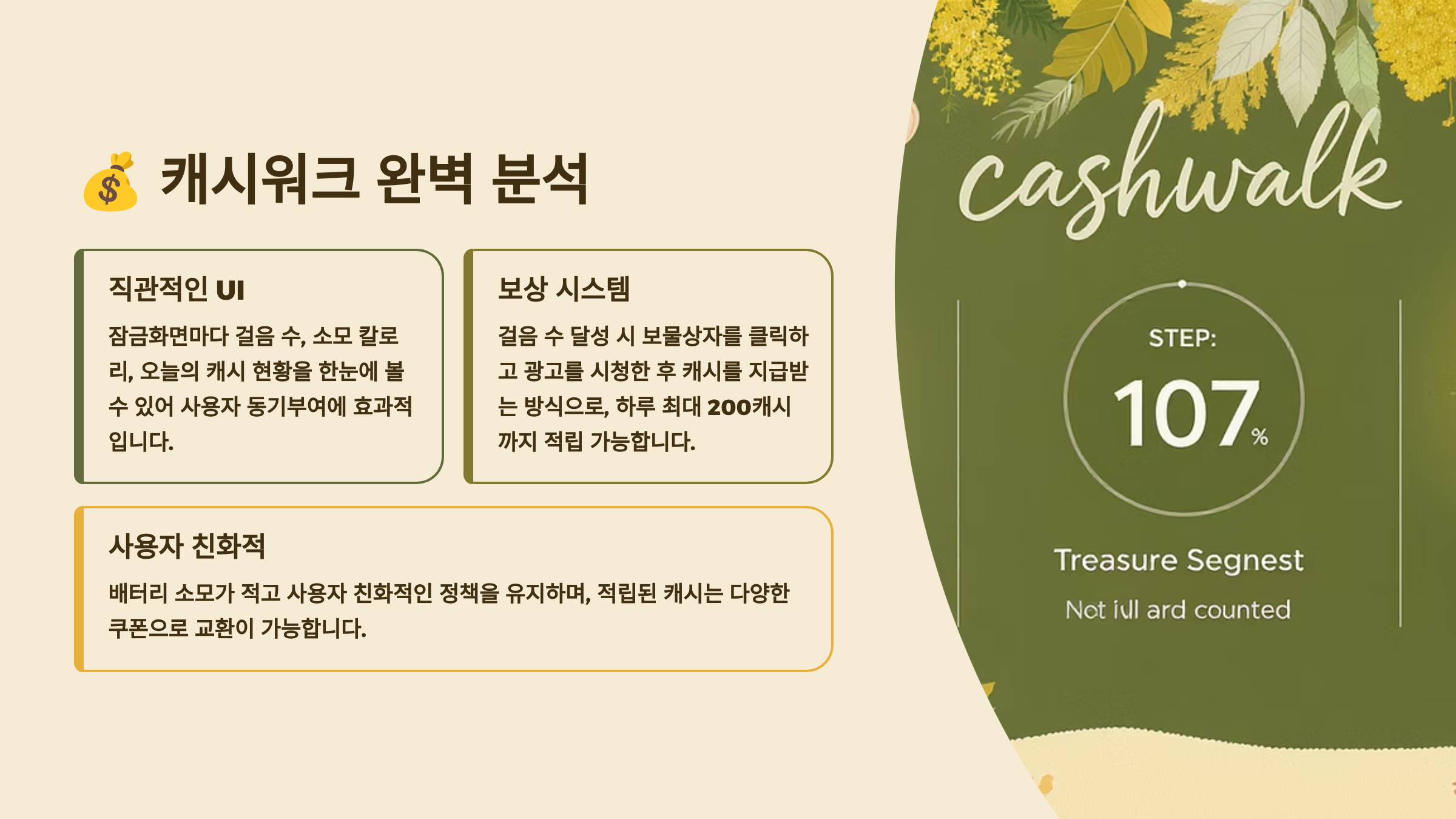 캐시워크 사용자들의 실제 후기를 보면 대체로 만족도가 높은 편이에요. 특히 "따로 시간을 내지 않아도 일상생활 중에 자연스럽게 포인트가 쌓인다"는 점을 장점으로 꼽더라고요. 다만 일부 사용자들은 "광고가 너무 많다", "가끔 걸음 수가 제대로 인식되지 않는다"는 불만을 제기하기도 해요.