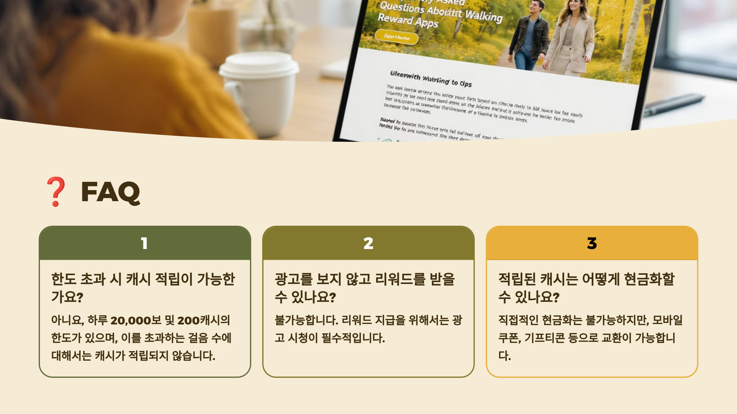 마지막으로 당부드리고 싶은 건, 수익에만 집중하지 말고 건강을 우선시하라는 거예요. 걷기 앱은 어디까지나 동기부여 수단일 뿐, 진짜 목적은 건강한 생활습관을 만드는 것이니까요. 오늘부터라도 스마트폰을 들고 밖으로 나가보세요. 건강도 챙기고 용돈도 벌 수 있는 일석이조의 기회가 여러분을 기다리고 있답니다! 화이팅! 💪😊