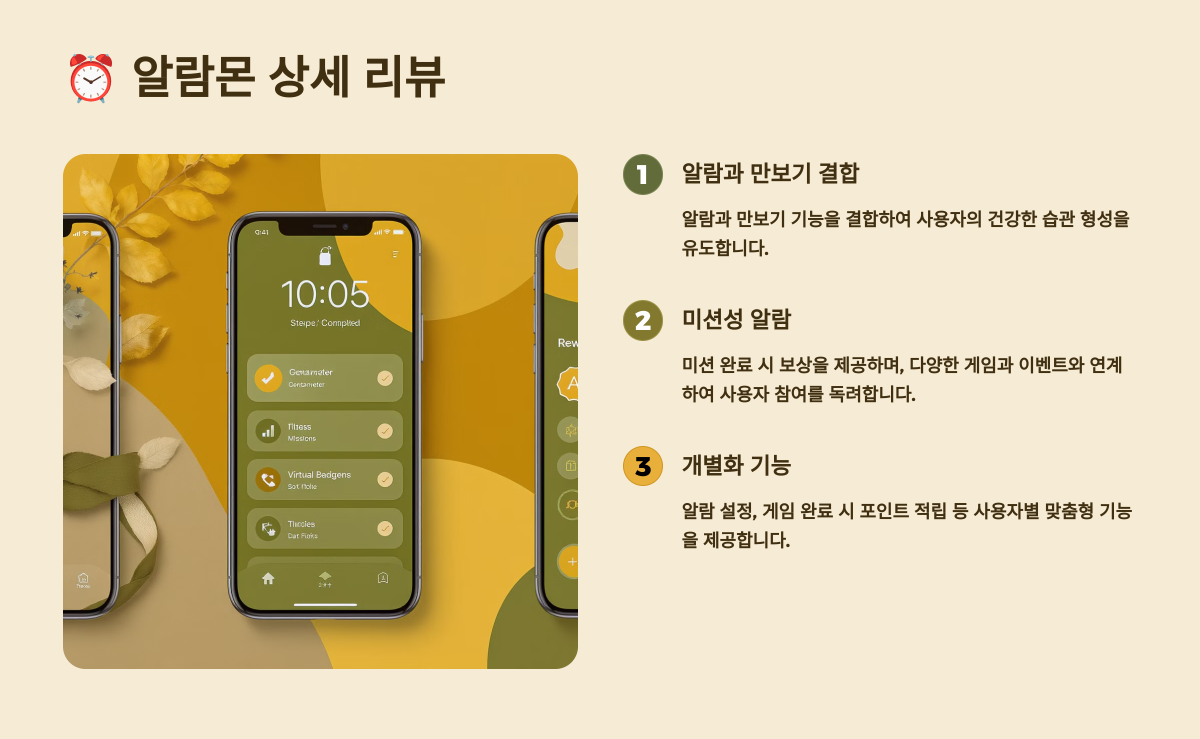 | 알람몬 | 약 25% | 알람+걷기 결합 |