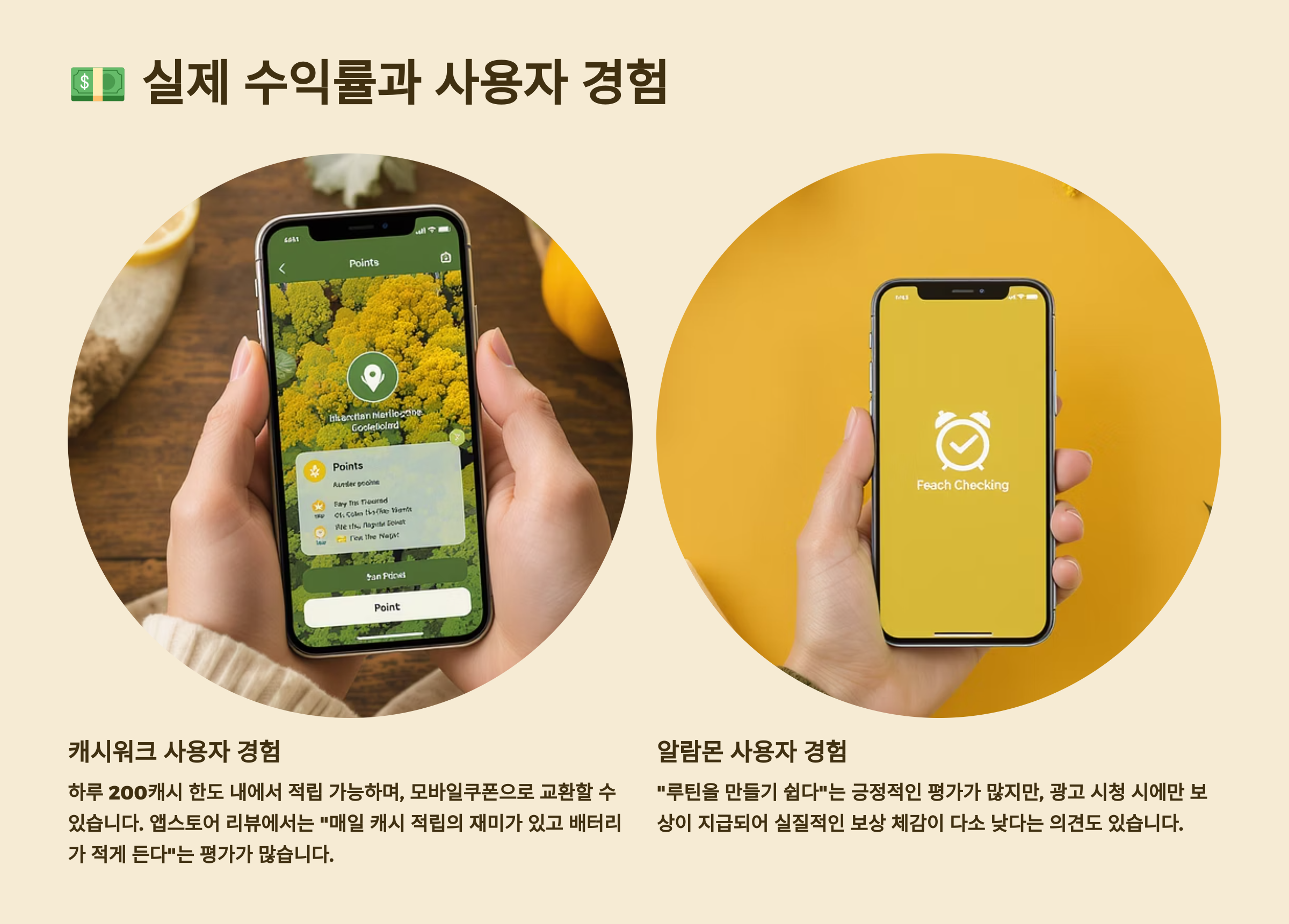 이론적인 비교도 중요하지만, 실제 사용자들의 경험담이 더 와닿을 거예요. 제가 직접 두 앱을 3개월간 사용해보고, 다른 사용자들의 후기도 수집해서 정리해봤어요. 과연 광고에서 말하는 것처럼 정말 돈이 될까요? 🤔