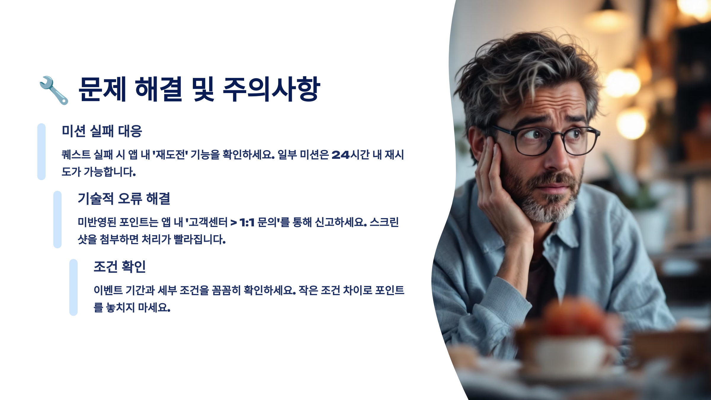 A5. 퀘스트 상세 페이지에서 조건을 다시 확인하고, 불분명한 부분이 있다면 고객센터에 문의하는 것이 좋아요. 스크린샷과 함께 문의하면 더 정확한 답변을 받을 수 있습니다.