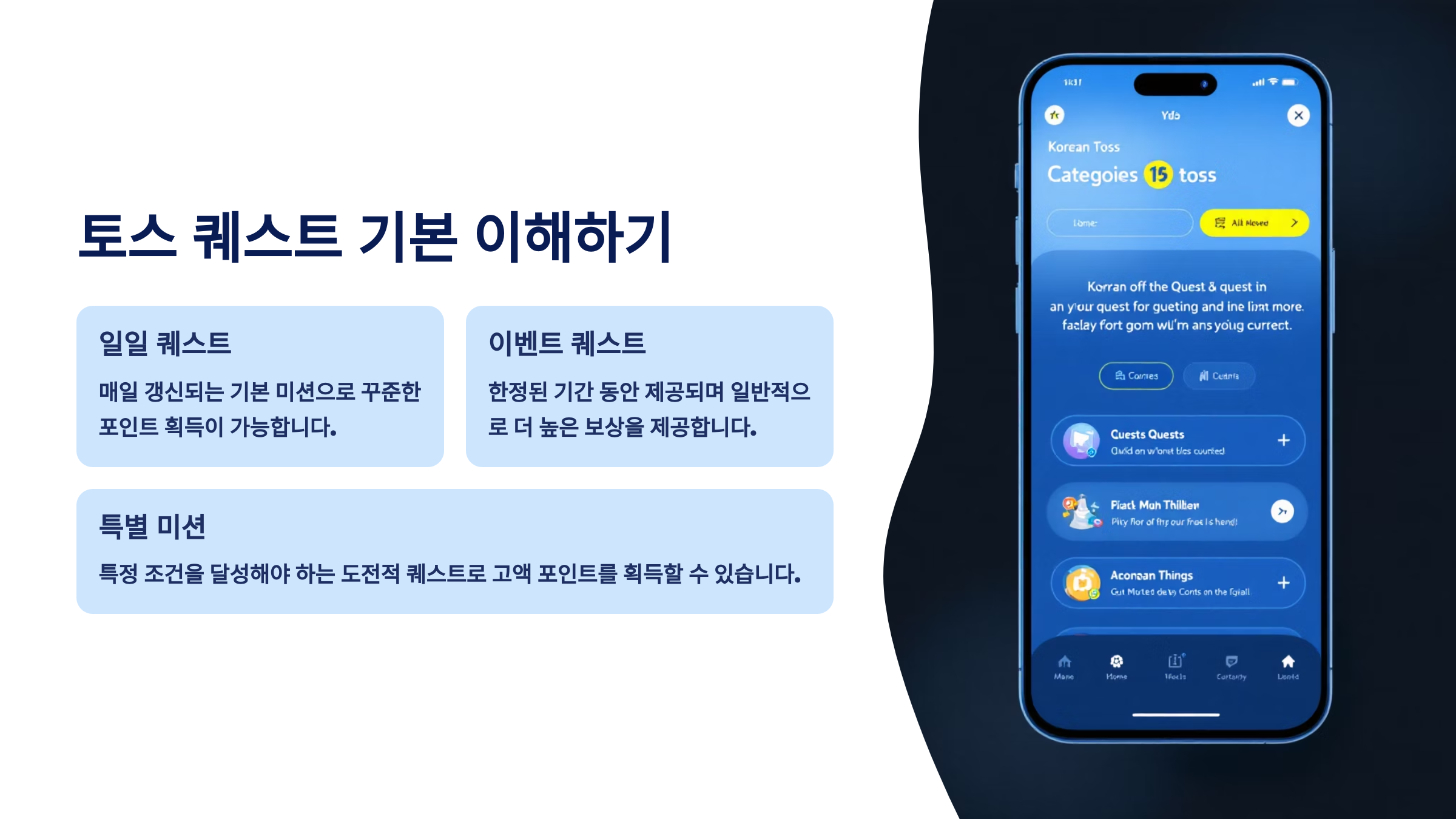 토스 퀘스트를 처음 시작하는 분들이 알아둬야 할 중요한 점은 퀘스트가 매일 새벽에 갱신된다는 거예요. 보통 자정 즈음에 새로운 퀘스트가 업데이트되고, 이전 날의 퀘스트는 사라져요. 그래서 퀘스트를 놓치지 않으려면 매일 확인하는 습관을 들이는 것이 중요해요. 또한 일부 퀘스트는 선착순으로 제한되어 있거나, 특정 시간대에만 활성화되는 경우도 있어서 타이밍도 중요한 요소 중 하나랍니다.