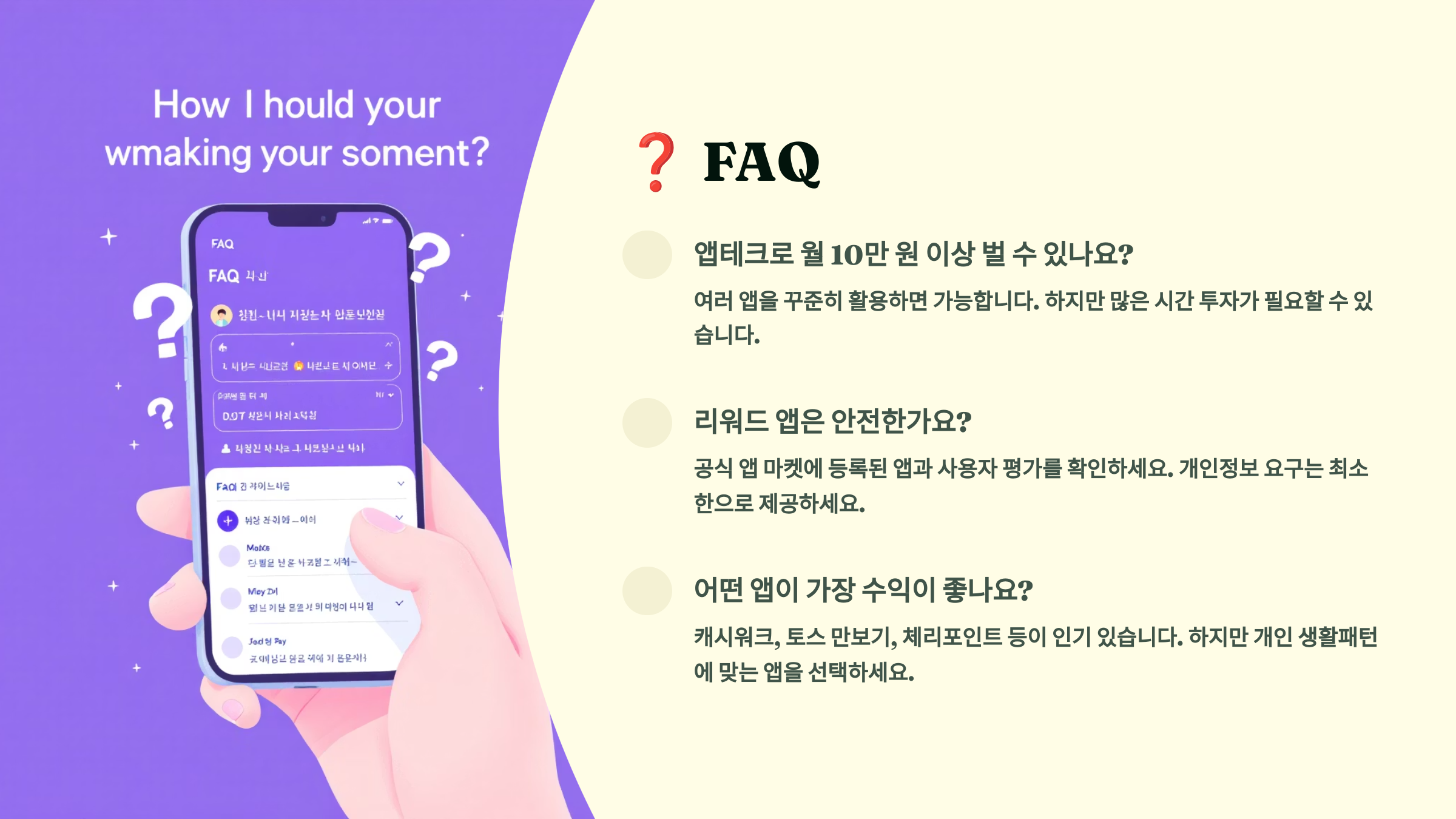 Q1. 앱테크 초보자도 하루 15분으로 월 10만원을 벌 수 있나요?