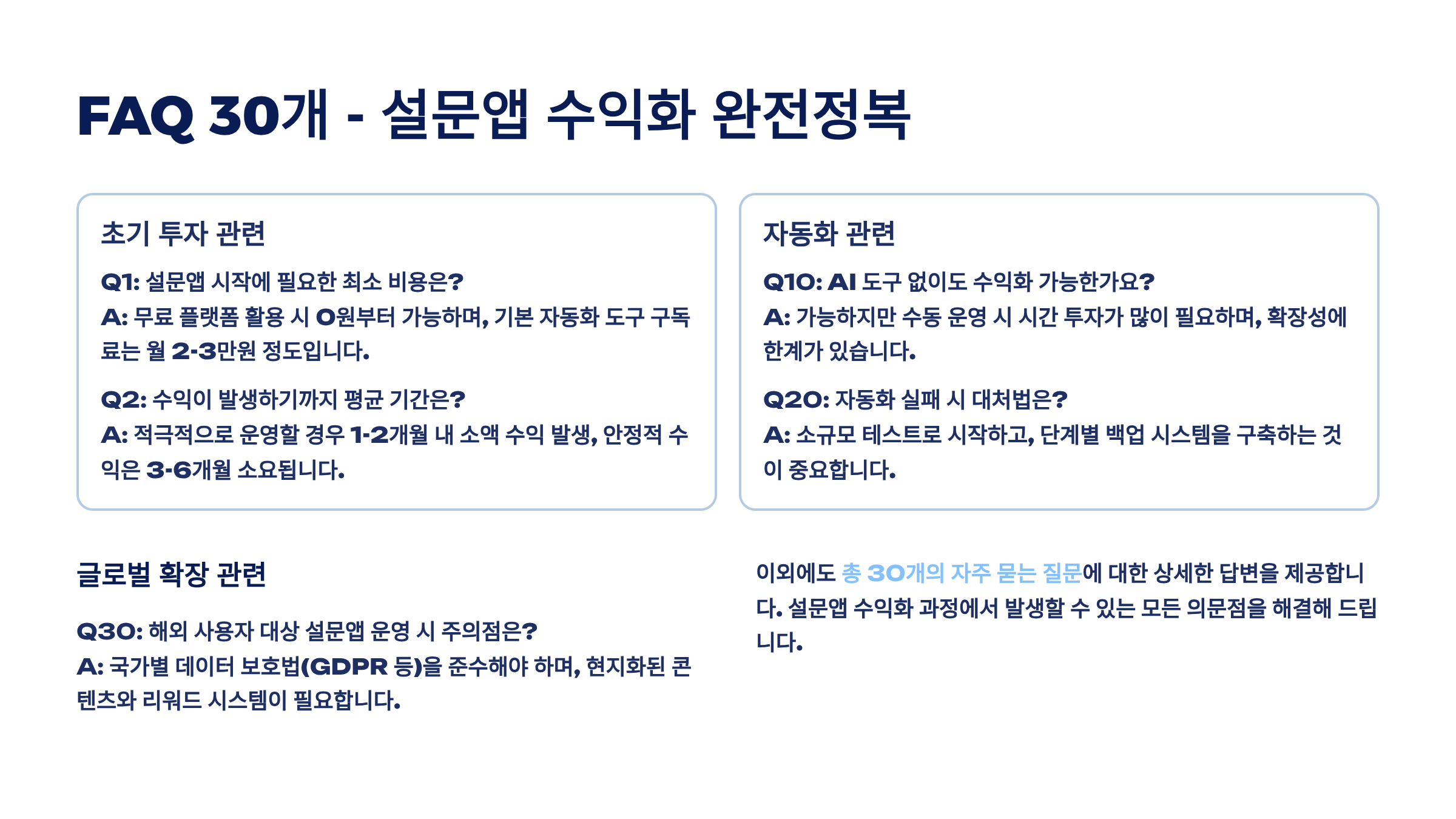 ❓ FAQ 30개 - 설문앱 수익화 완전정복